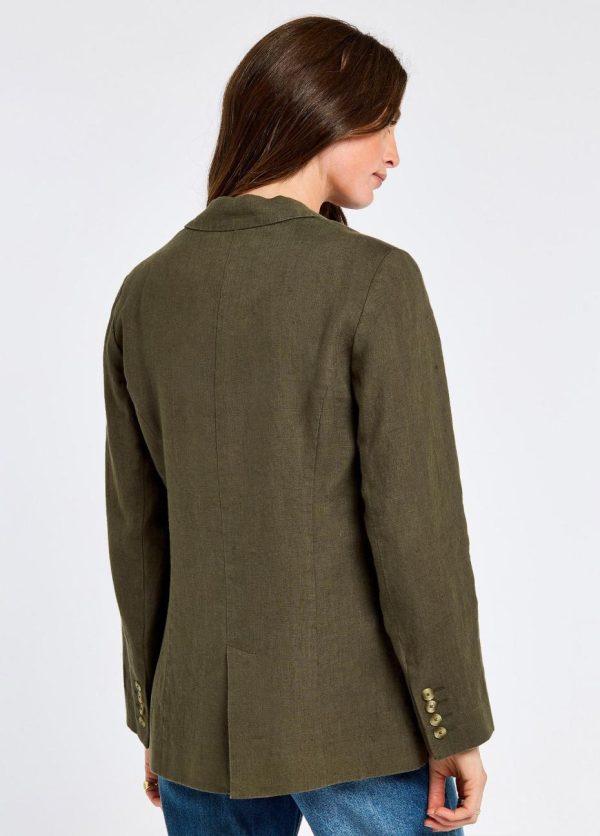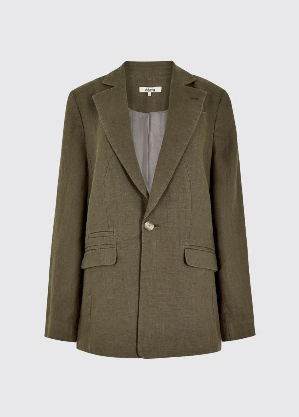 A sophisticated addition to you wardrobe, our Avonlea tailored linen jacket will elevate your summer style in an instant. The one button design with a relaxed shape can be worn with matching Dubarry Maryland shorts or simply teamed with jeans, tailored trousers or dresses of your choice. Expertly tailored in Portugal the 100% European linen is cool and breathable, ideal for smart summer invitations and evening cocktails
