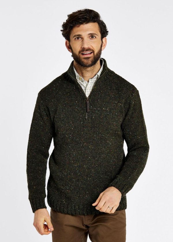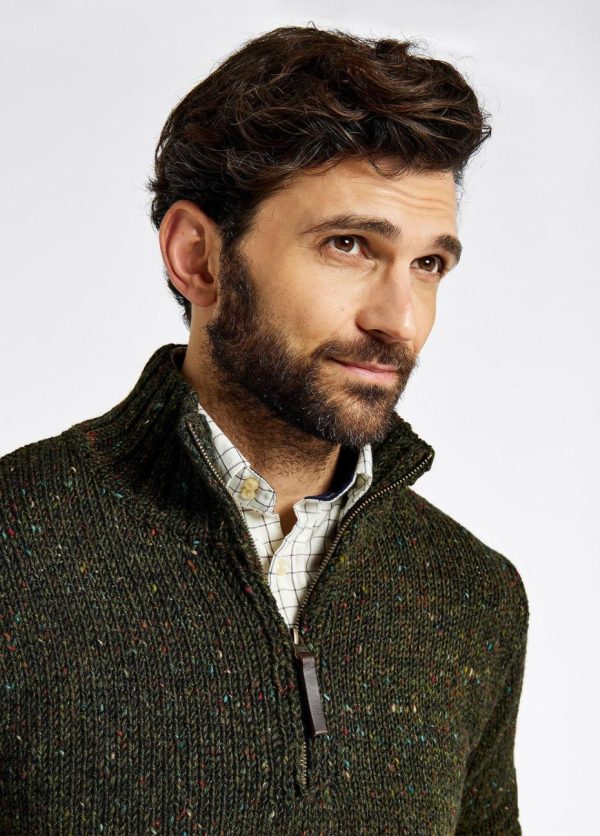 Callaghan Men’s zip neck sweater knit in 100% Donegal wool in olive