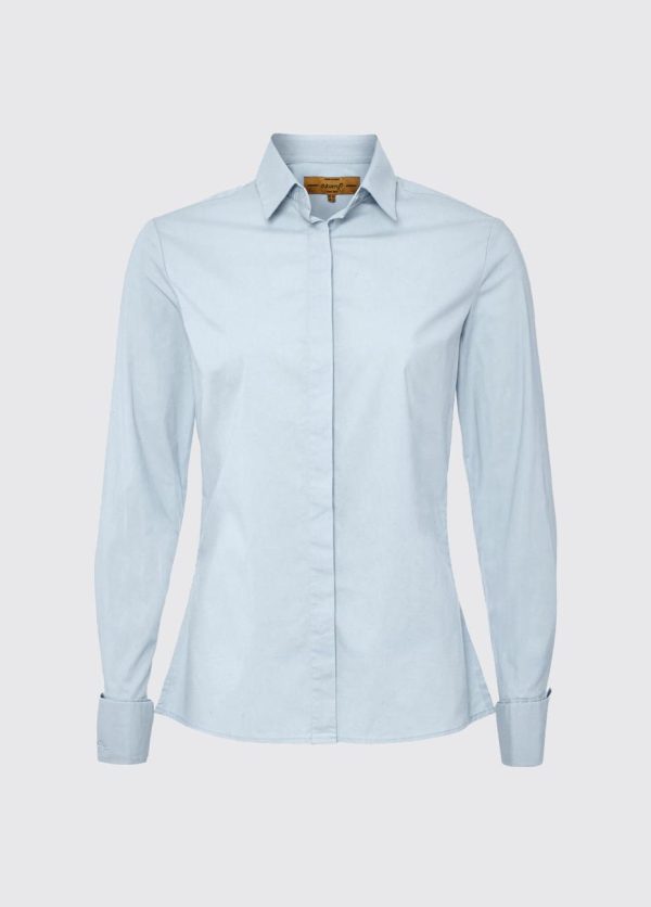 The Daffodil shirt is a beautifully tailored for sophisticated style. French cuffs have knot cufflinks and the buttoned front is neatly hidden while crisp, stretch cotton allows excellent comfort and movement at the same time as keeping its shape. Match with a Dubarry tweed jacket for an easy and elegant work day fix.