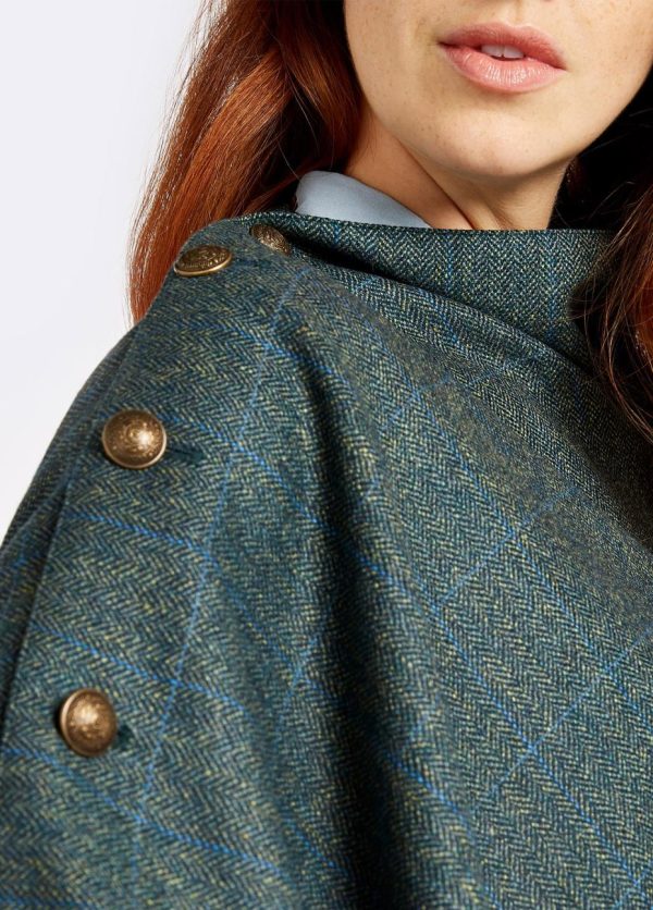 The tweed that should be in every Woman’s wardrobe. Dubarry’s Hazelwood poncho is a super versatile and comfortable piece which you will find yourself in again and again. Cosy Teflon coated 100% wool drapes elegantly, fastened to one side with smart brass coloured buttons and the one-size-fits-all relaxed style feels as at home at the races as in town or the local pub.