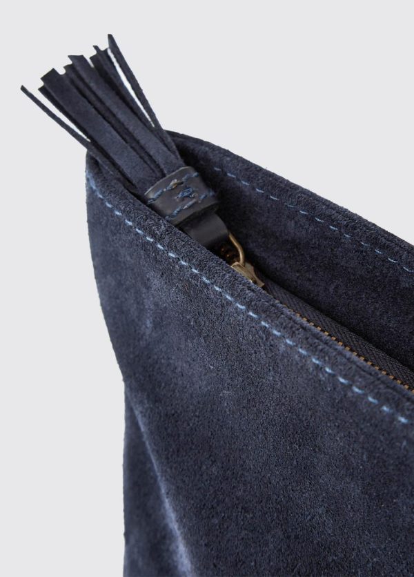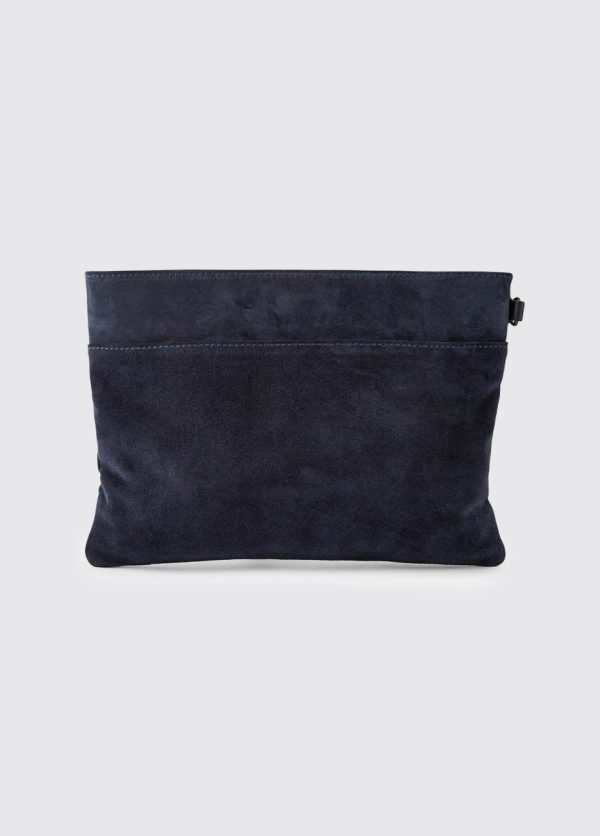 Dubarry ladies, soft suede clutch handbag made from real cow hide and featuring a detachable wrist strap. Available in navy or brown.